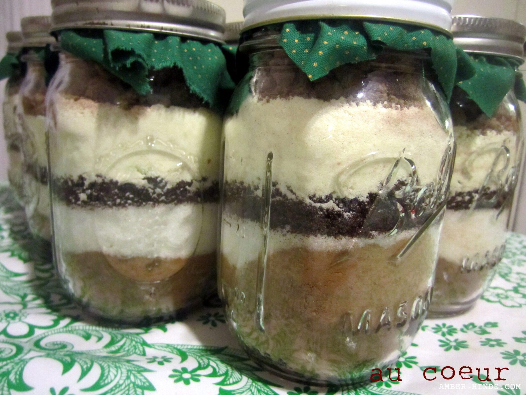 I know I said I didn’t want to spoil surprises, but I have to let the cat out of the bag on this hot cocoa mix, because it’s super cute and super easy — perfect if you’re still looking for a little something to make for someone. I love the way layered gift jars look, and when I came across this recipe for cocoa mix with espresso in it, I knew that I had to make some. I made them in pint jars, which is approximately 6 servings. Add a fabric scrap over the lid and a little tag with the preparation directions, and it’s the perfect gift!